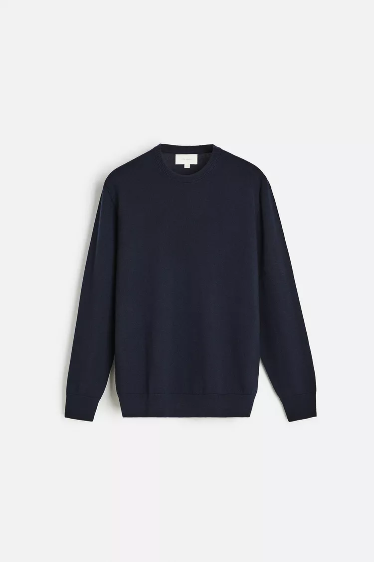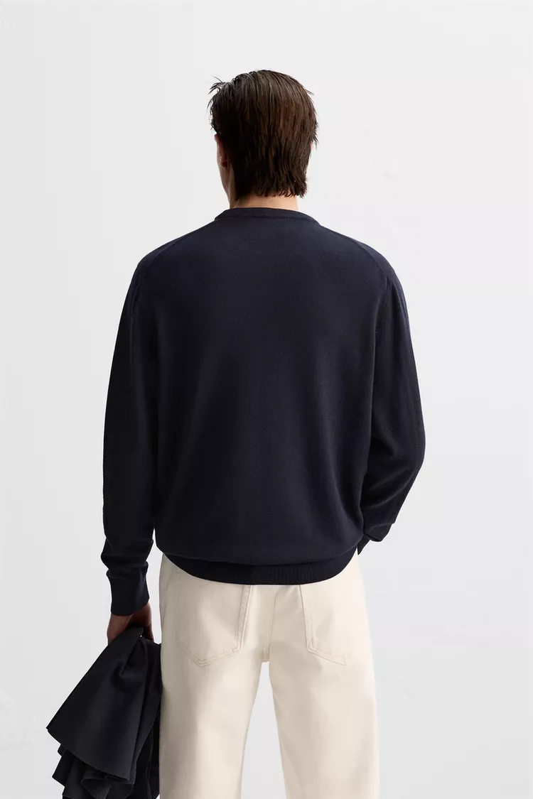 Descubre el suéter regular fit tejido en hilatura de lana merino, diseñado para brindar comodidad y estilo. Con un cuello redondo y mangas largas, este suéter es perfecto para cualquier ocasión, asegurando que te veas bien mientras te mantienes abrigado.